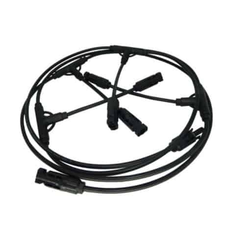 Este arnés permite una rápida y fácil conexión de los cables al sistema fotovoltaico, además de satisfacer las necesidades de conexión de módulos fotovoltaicos a combinadores e inversores de cadena. Las terminaciones son compatibles con conectores de módulos fotovoltaicos estándar y látigos combinadores de cadenas o portafusibles de entrada. Se puede configurar una amplia gama de soluciones de cables y conectores para cumplir con todos los diseños de proyectos de energía solar fotovoltaica residenciales, comerciales y de servicios públicos. Los conductores se pueden codificar por colores y etiquetar para reducir los errores de conexión.